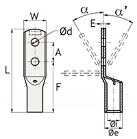 ? For bent terminals, specify α or α' (α max. 90° - α' maxi 45°)